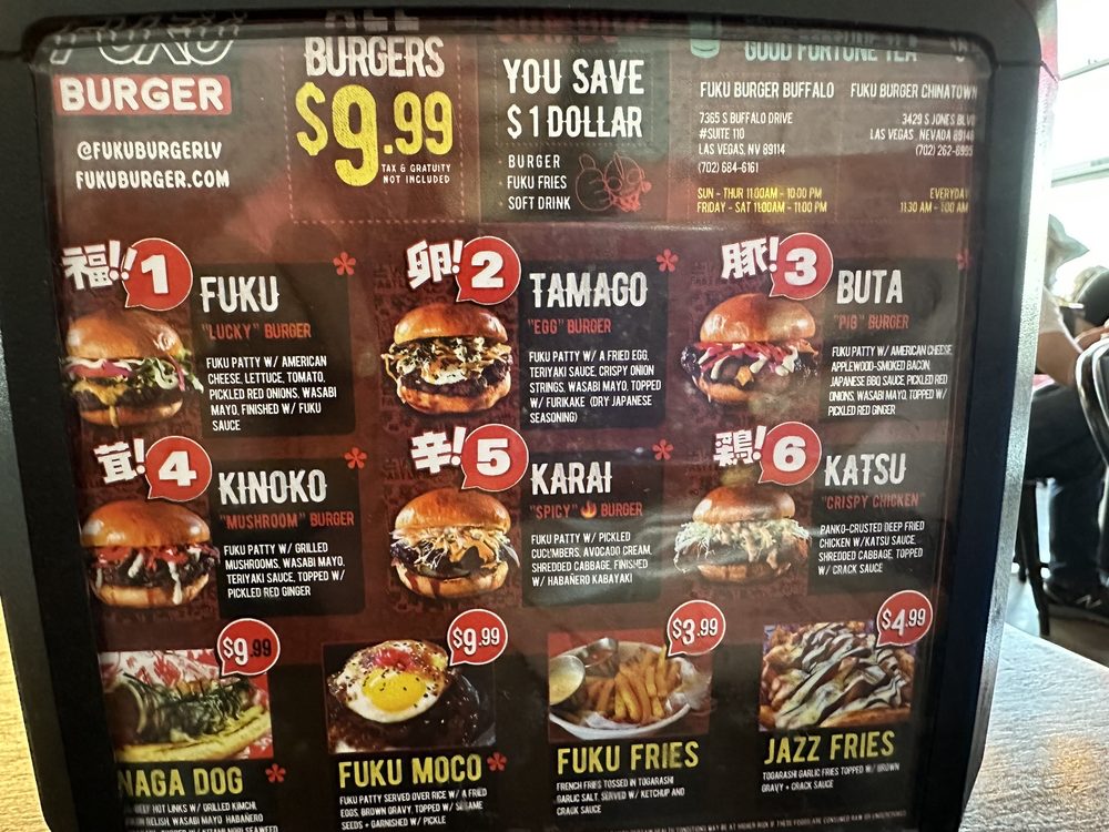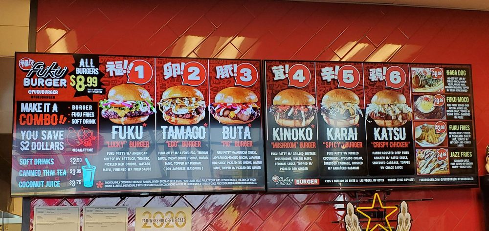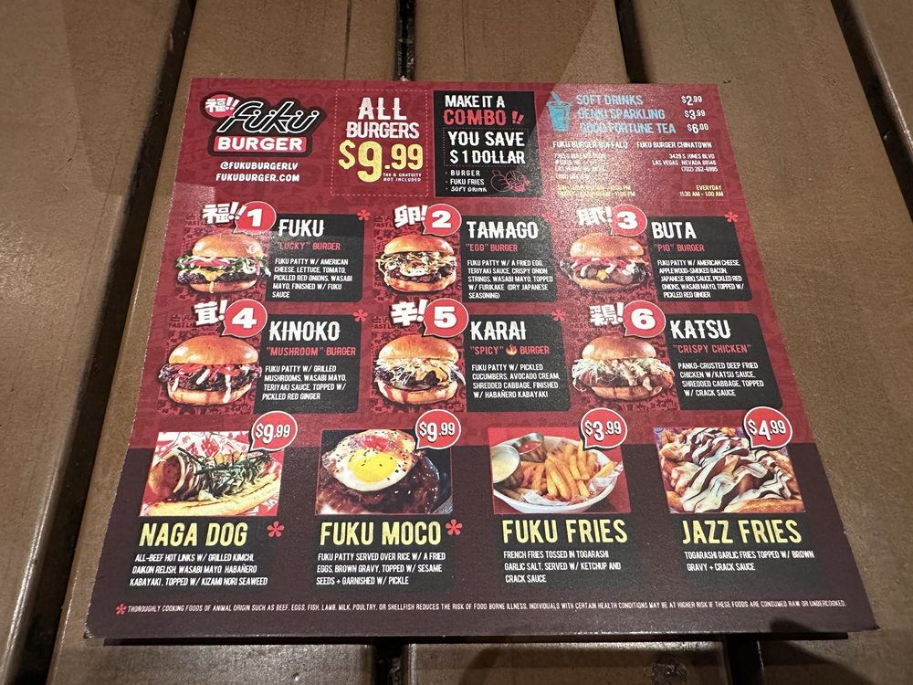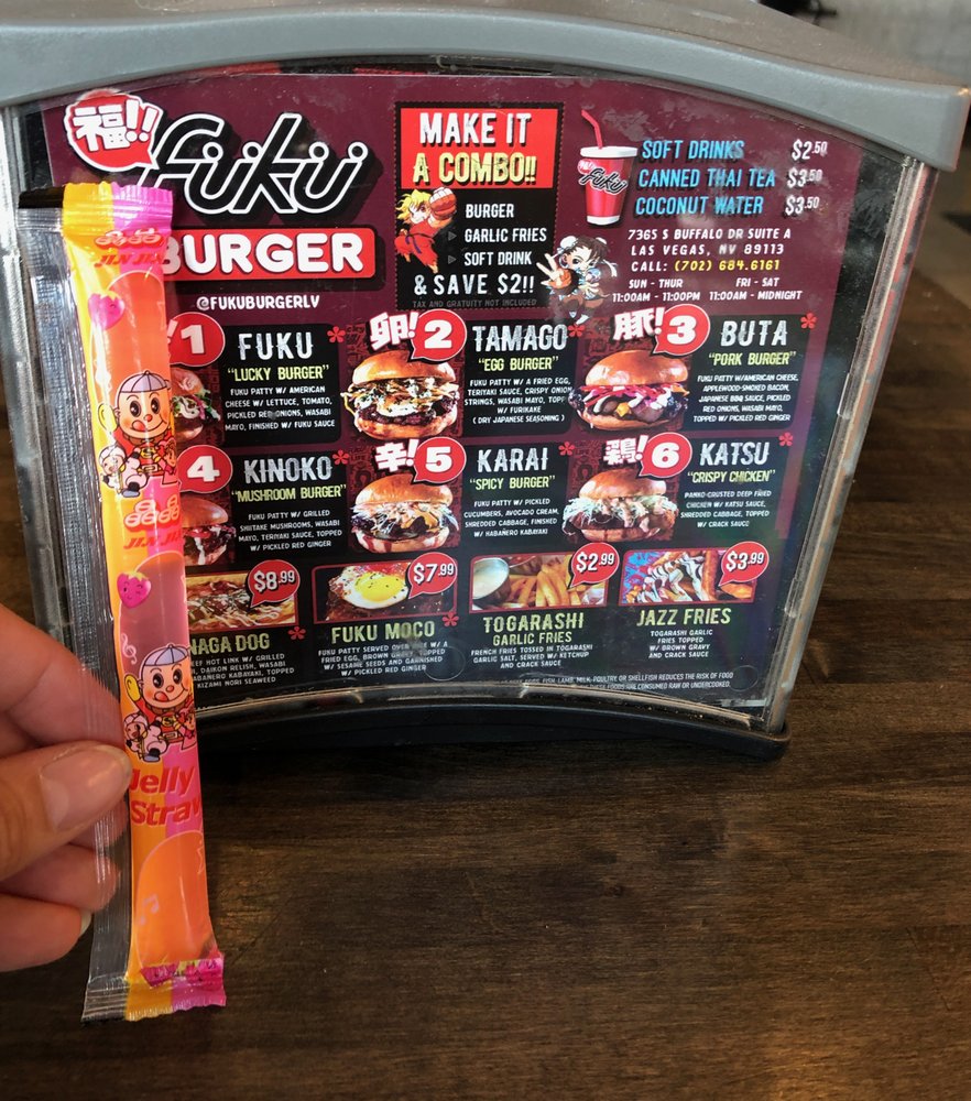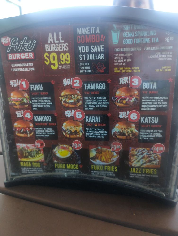 Welcome to Fukuburger Buffalo! This trendy and casual restaurant offers a unique Asian fusion menu with a focus on burgers and fries. Located in Las Vegas, NV, Fukuburger Buffalo provides delivery, takeout, and reservation options. With limited vegetarian choices, this spot is perfect for groups and families looking for a fun dining experience. Try their signature Fuku Burger or the flavorful Tamago burger with Jazz fries for a delicious meal. Customers rave about the juicy beef patties, soft buns, and friendly service. The vibrant anime-themed ambiance adds to the overall dining experience. Don't miss out on the opportunity to indulge in these flavorful dishes at Fukuburger Buffalo.